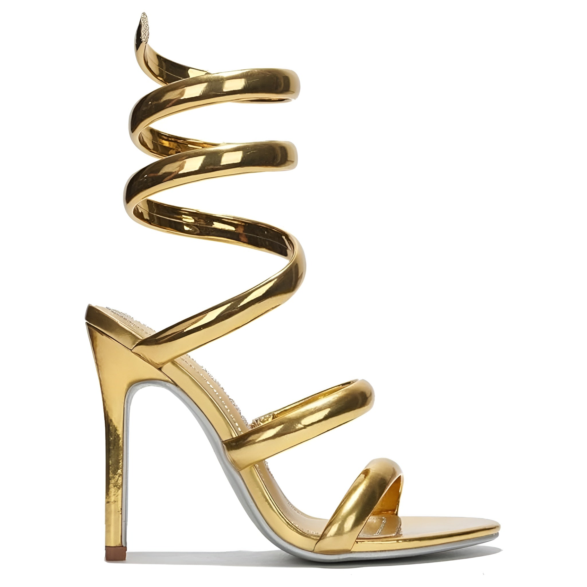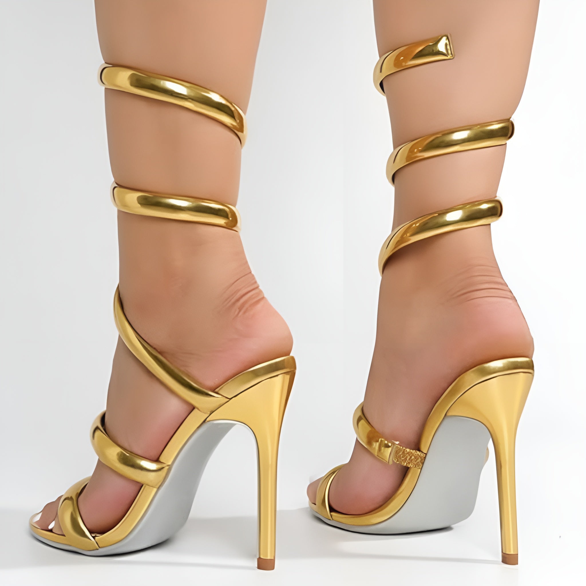 Elevate your style with these Women's Open Toe Spiral Wrap Up Strappy High Heels Sandals. Featuring a 4-inch stiletto heel and a distinctive coil spiral ankle wrap, these sandals combine elegance with secure support. The open round toe design and lightly cushioned insole ensure comfort, while the durable rubber outsole provides reliable traction. Ideal for weddings, parties, or special events, these strappy heels add a sophisticated touch to any outfit.