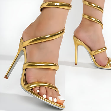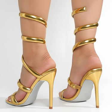 Women's Open Toe Spiral Wrap Up Strappy High Heels Sandals