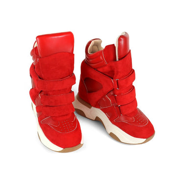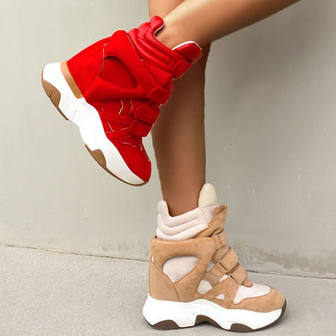 High Top Triple Hook and Loop Strap Padded Wedge Women's Sneaker Shoe