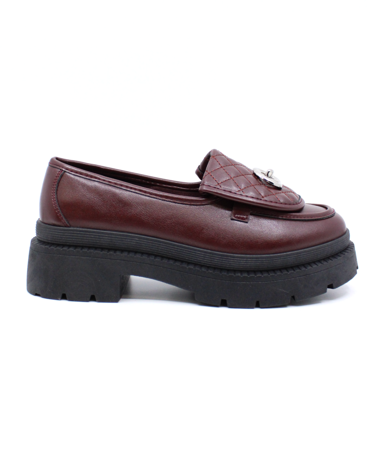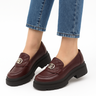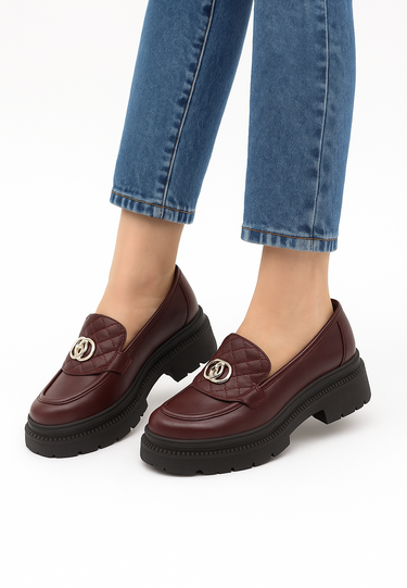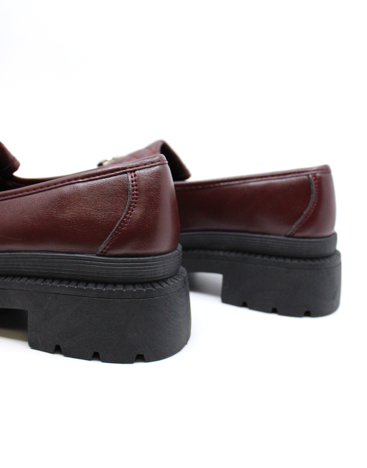 Chain Chunky Loafers – Burgundy Platform Slip-On Shoes