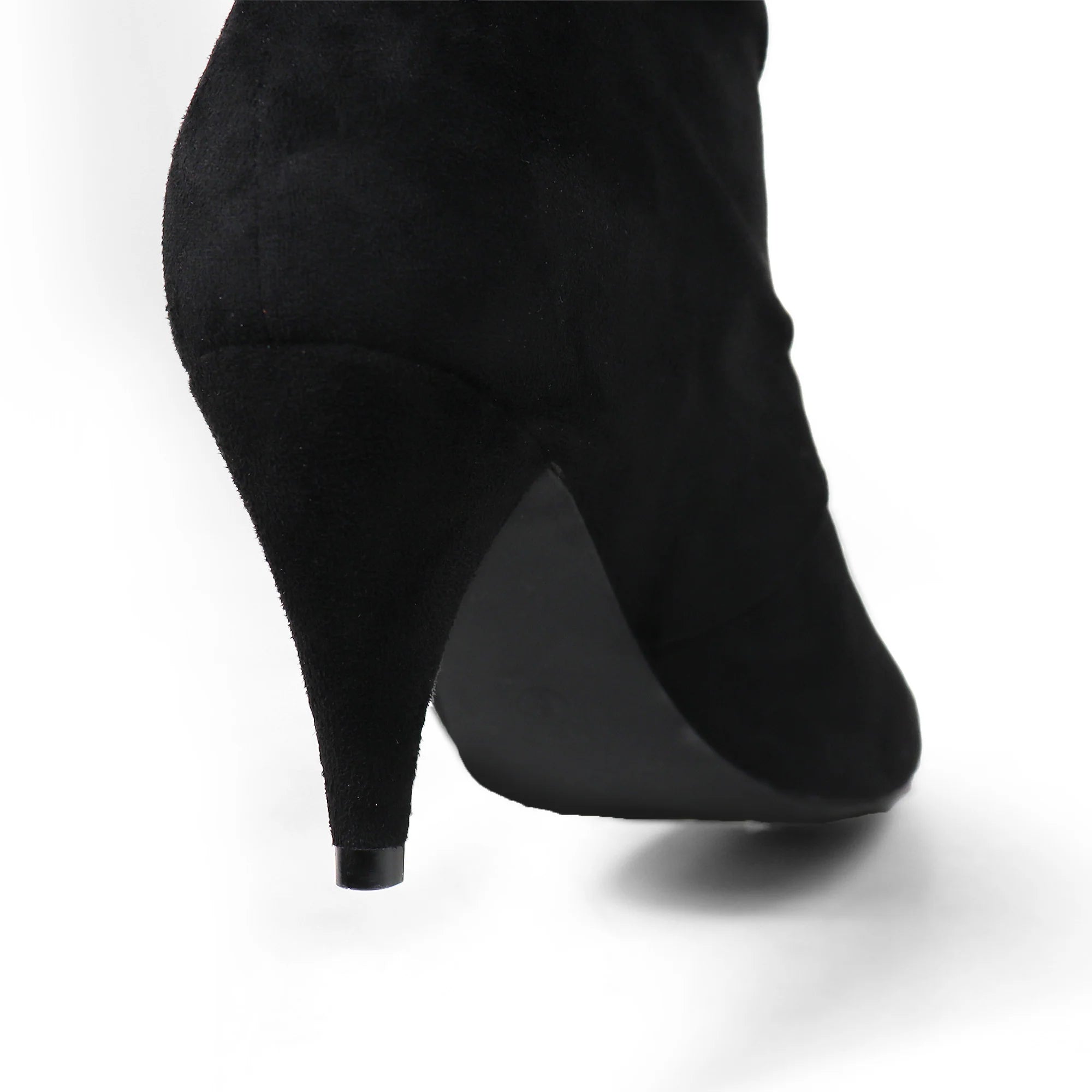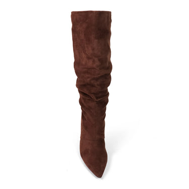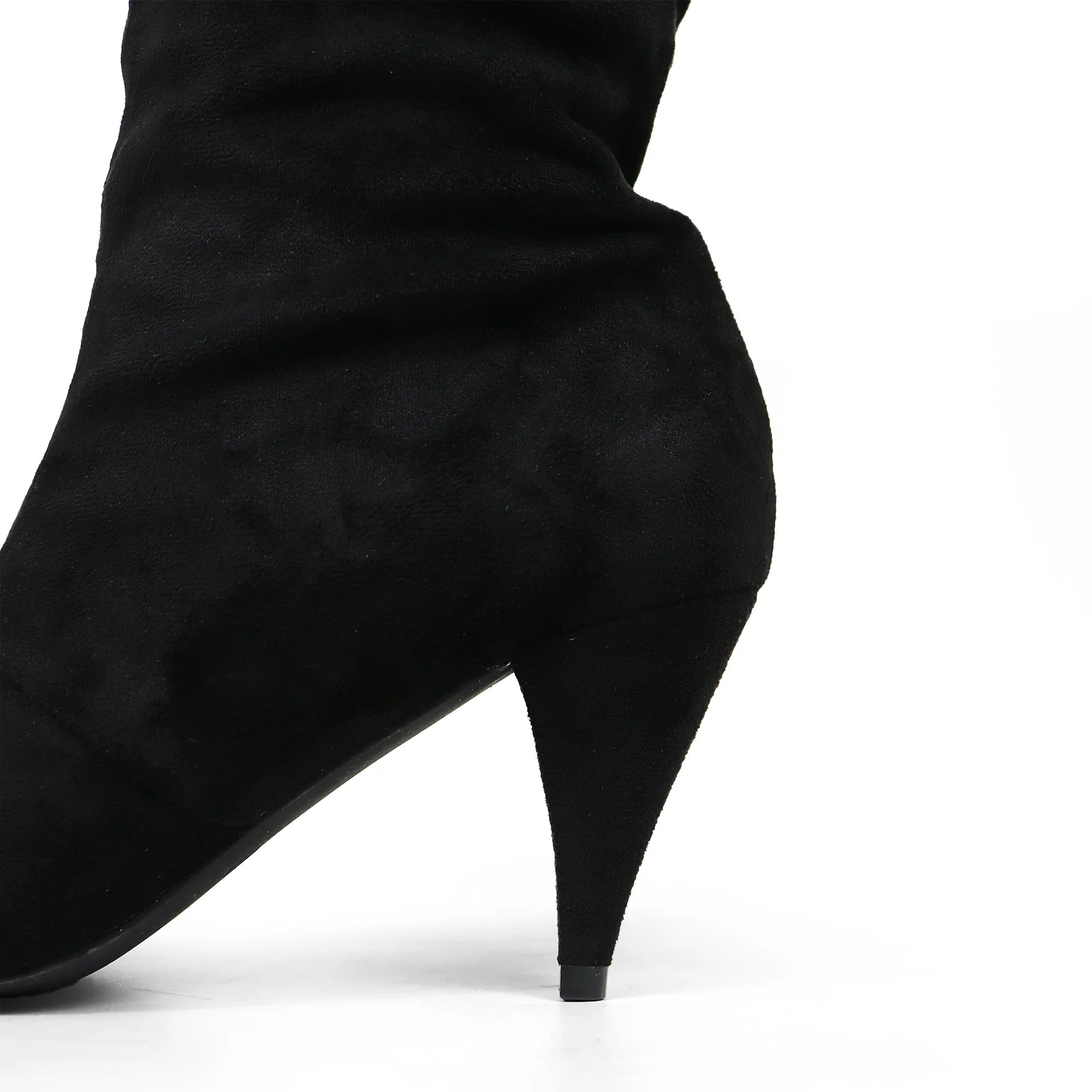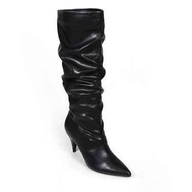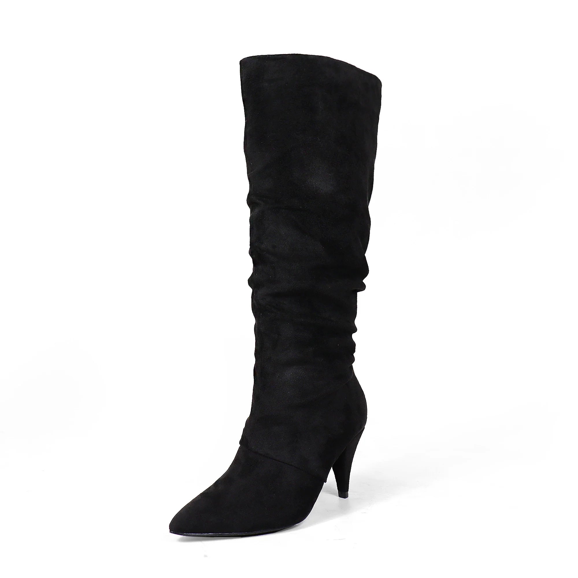 Elevate your style with these elegant mid-calf boots designed with a soft slouch silhouette that brings effortless charm to any outfit. Made from smooth suede-like material, they feature a refined pointed toe and a stable cone heel for the perfect mix of comfort and sophistication. Easy to slip on and style, these versatile boots complement everything from dresses to jeans, making them an essential piece for both casual days and chic nights out.