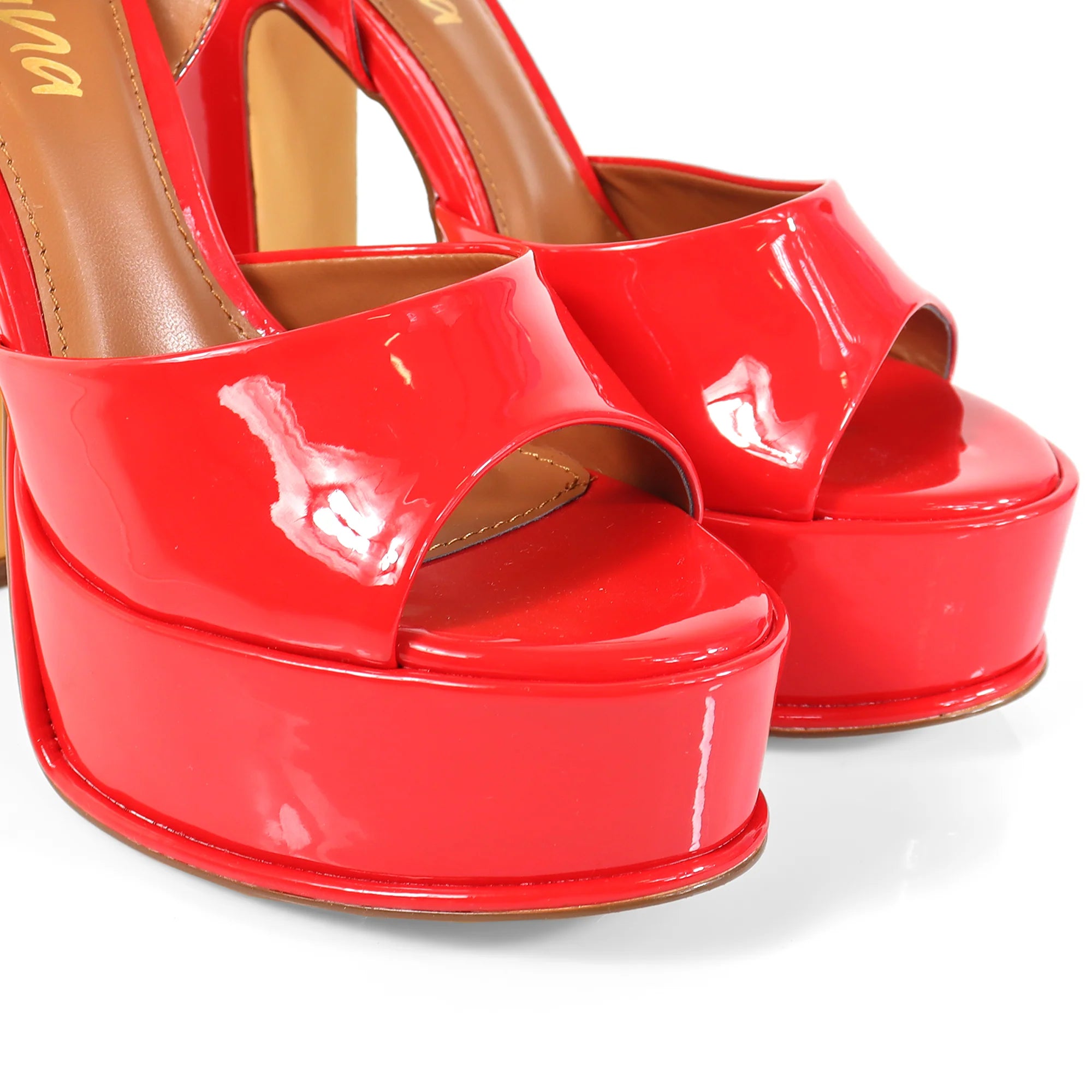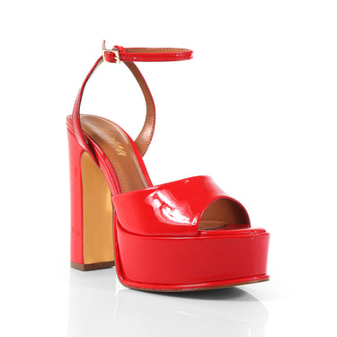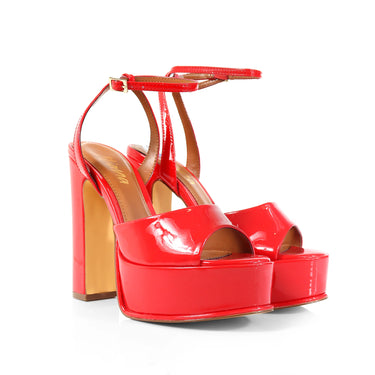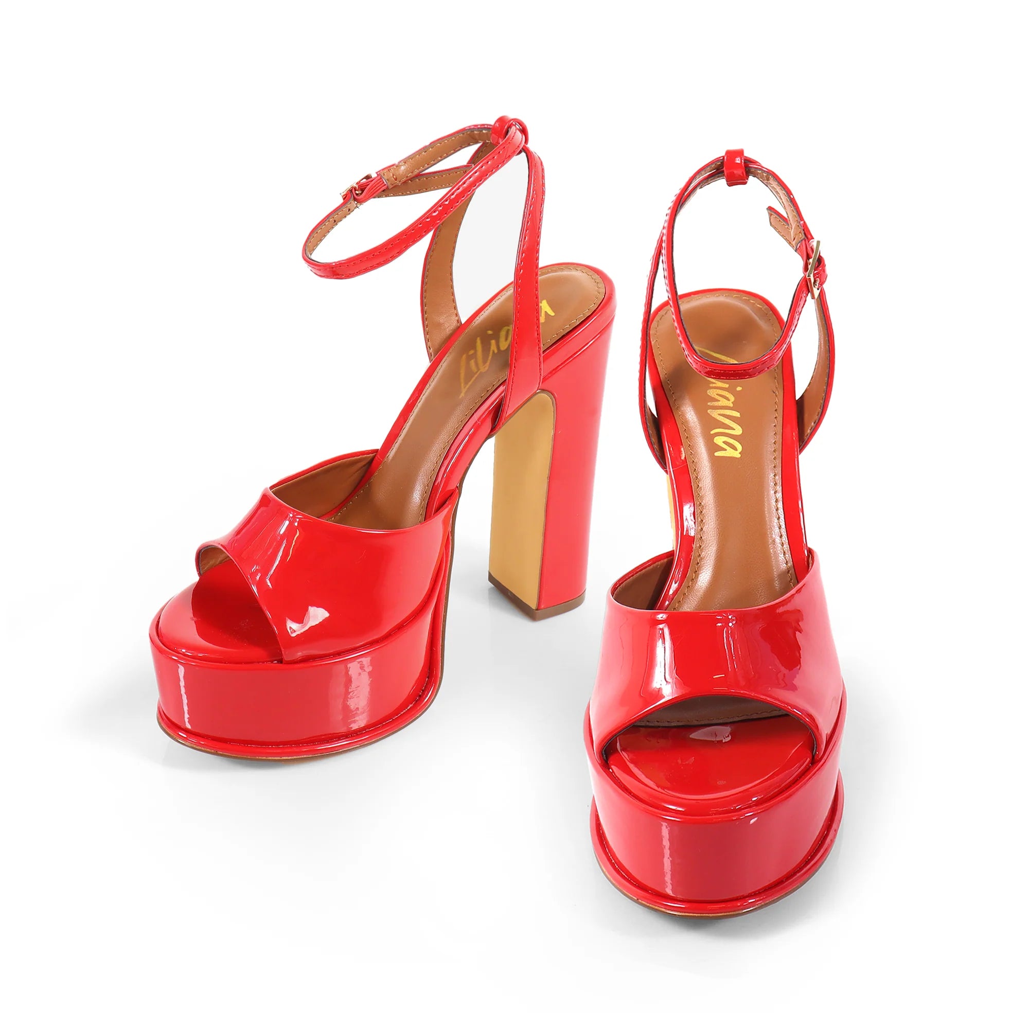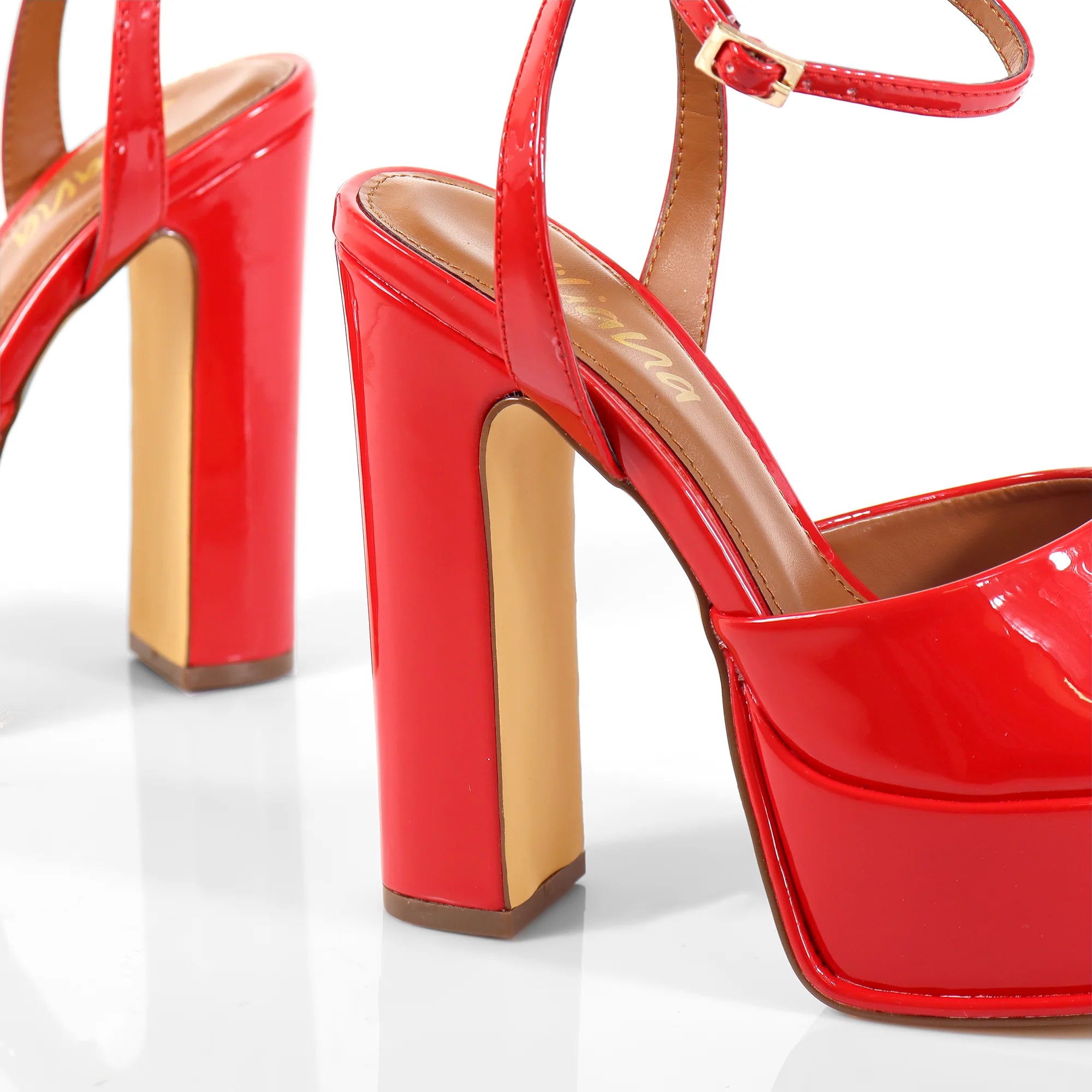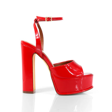 Red Peep Toe Chunky Platform Heels with Ankle Strap
