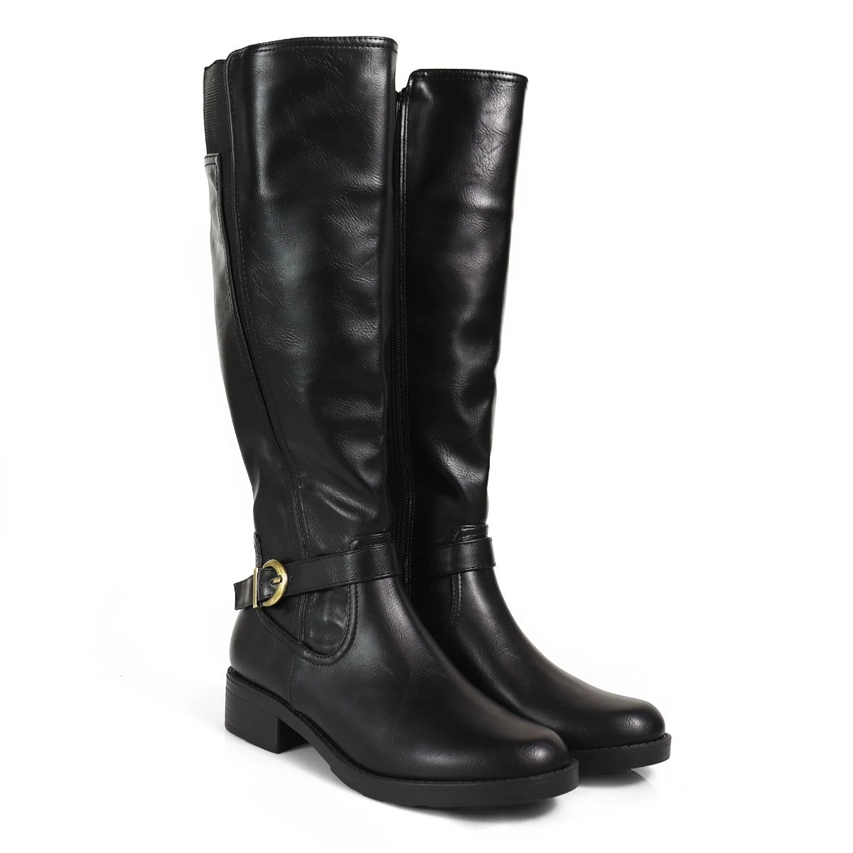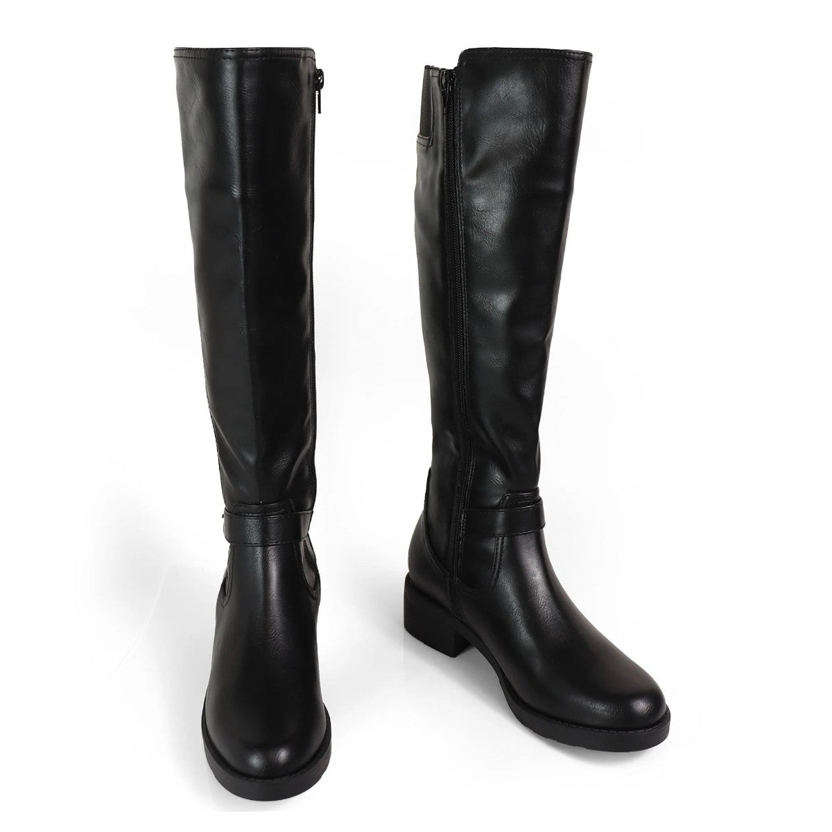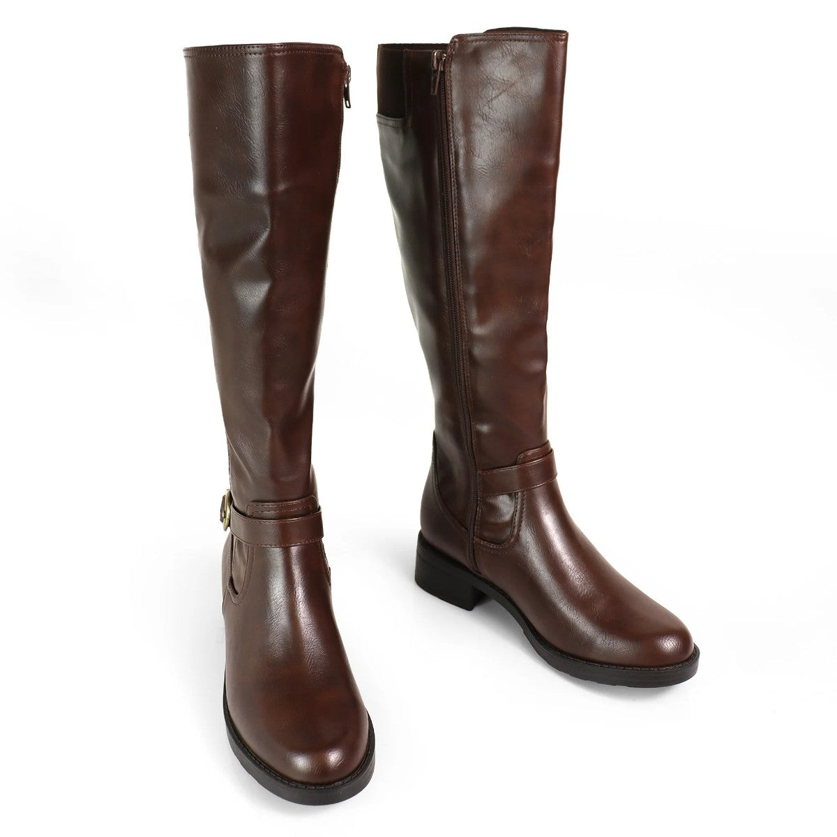 Add a touch of sophistication to your everyday style with these classic riding knee-high boots crafted for all-day comfort and functionality. Designed with a tall streamlined shaft, supportive low block heel, and a refined buckle strap accent, they pair effortlessly with jeans, leggings, or dresses. A convenient side zipper allows for easy wear, while the durable sole provides long-lasting support for daily activities. Perfect for work, casual outings, or seasonal looks, these boots deliver a versatile and polished finish to your fall and winter wardrobe.