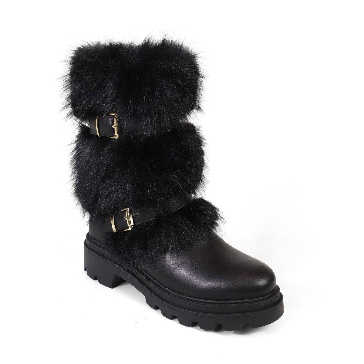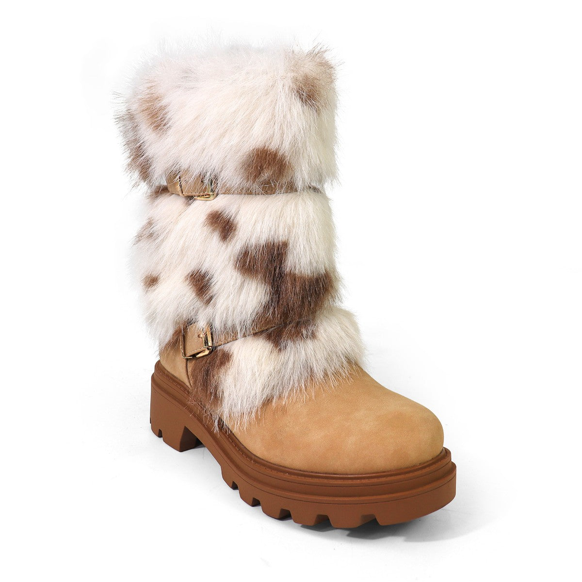 Stay warm and fashionable with these faux fur mid-calf boots designed to turn heads. Featuring soft layered fur accents, durable traction soles, and secure strap details, they provide comfort and long-lasting wear. Ideal for chilly evenings, seasonal outings, or adding a bold touch to your Halloween costume, these boots bring together cozy warmth and modern style. Pair them with jeans, leggings, or a winter jacket to create effortlessly chic looks all season long.