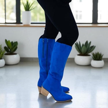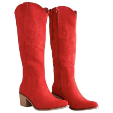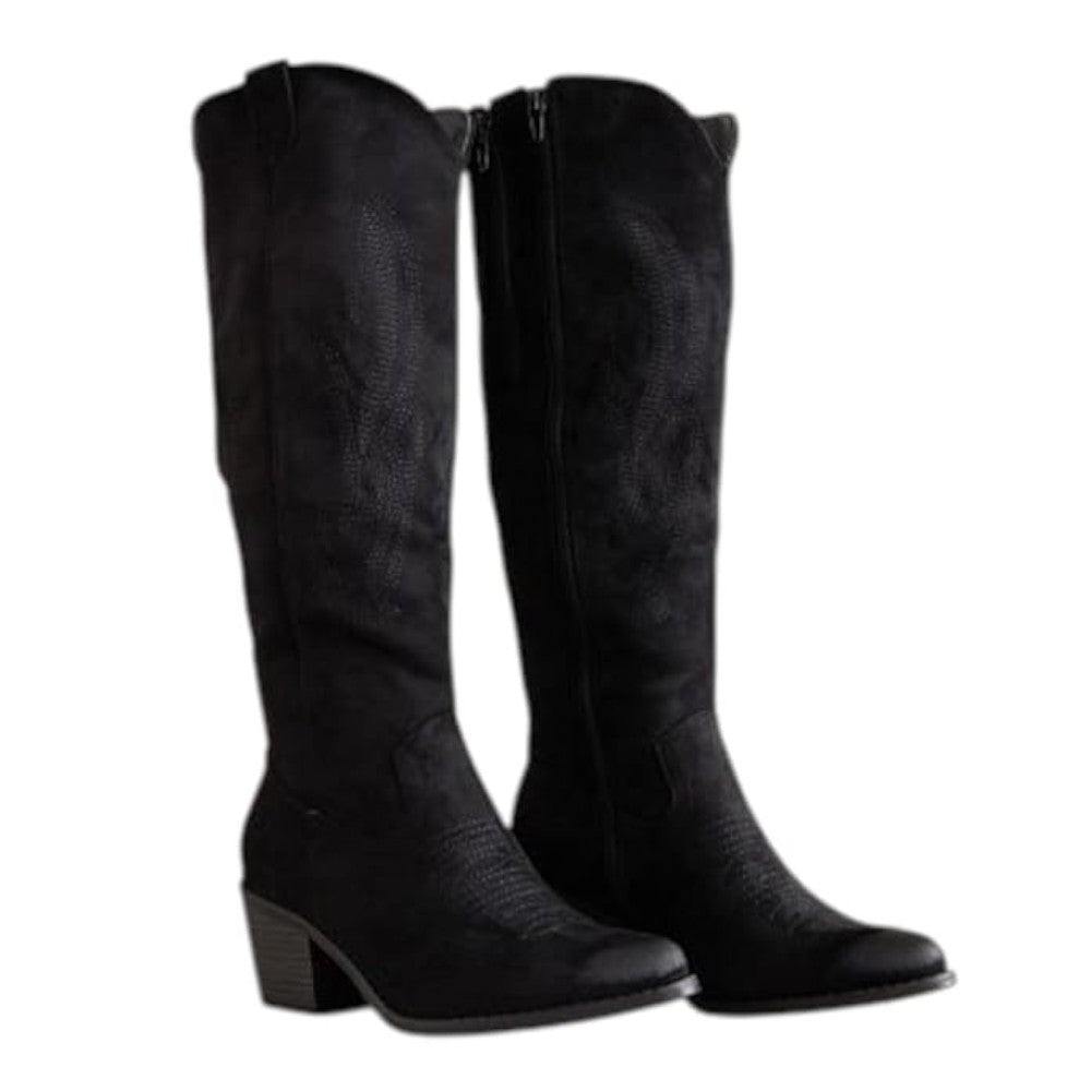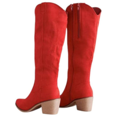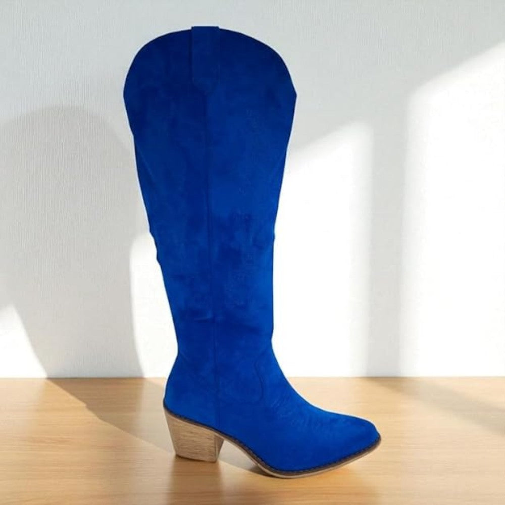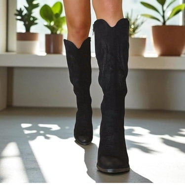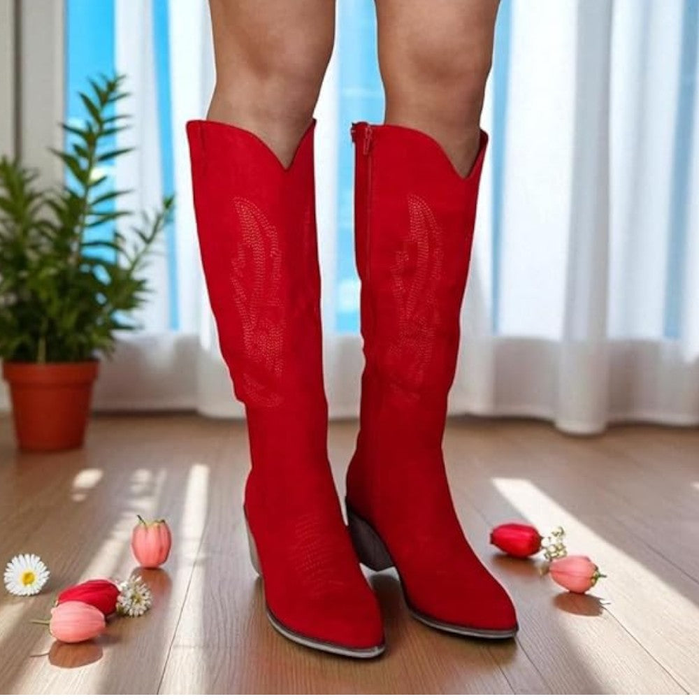 Elevate your look with these chic knee-high cowboy boots that blend timeless western flair with everyday comfort. Designed with a sharp pointed toe, detailed stitching on the shaft, and a supportive block heel, they’re built for both style and durability. A practical side zipper makes them effortless to slip on and off, while the cushioned insole keeps your feet comfortable all day. Perfect to pair with jeans, skirts, or dresses, these boots bring a bold, versatile edge to any wardrobe—ideal for casual wear, concerts, or a night out.