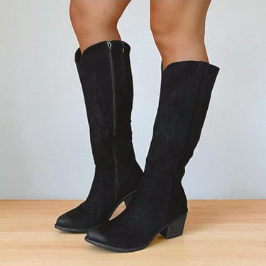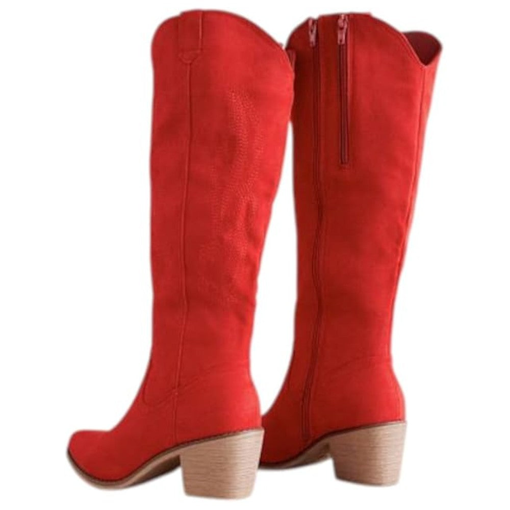 Women’s Knee-High Cowboy Boots – Western Style with Pointed Toe, Block Heel & Easy Side Zipper