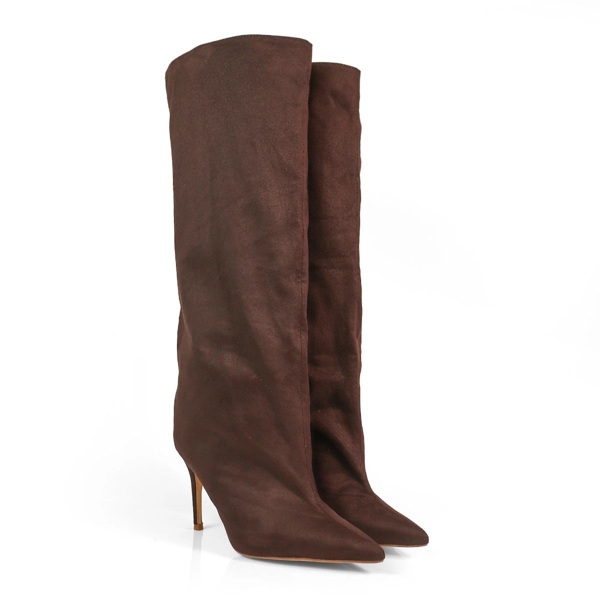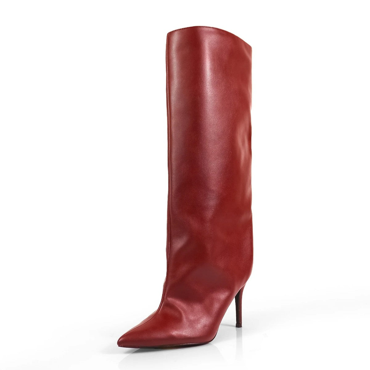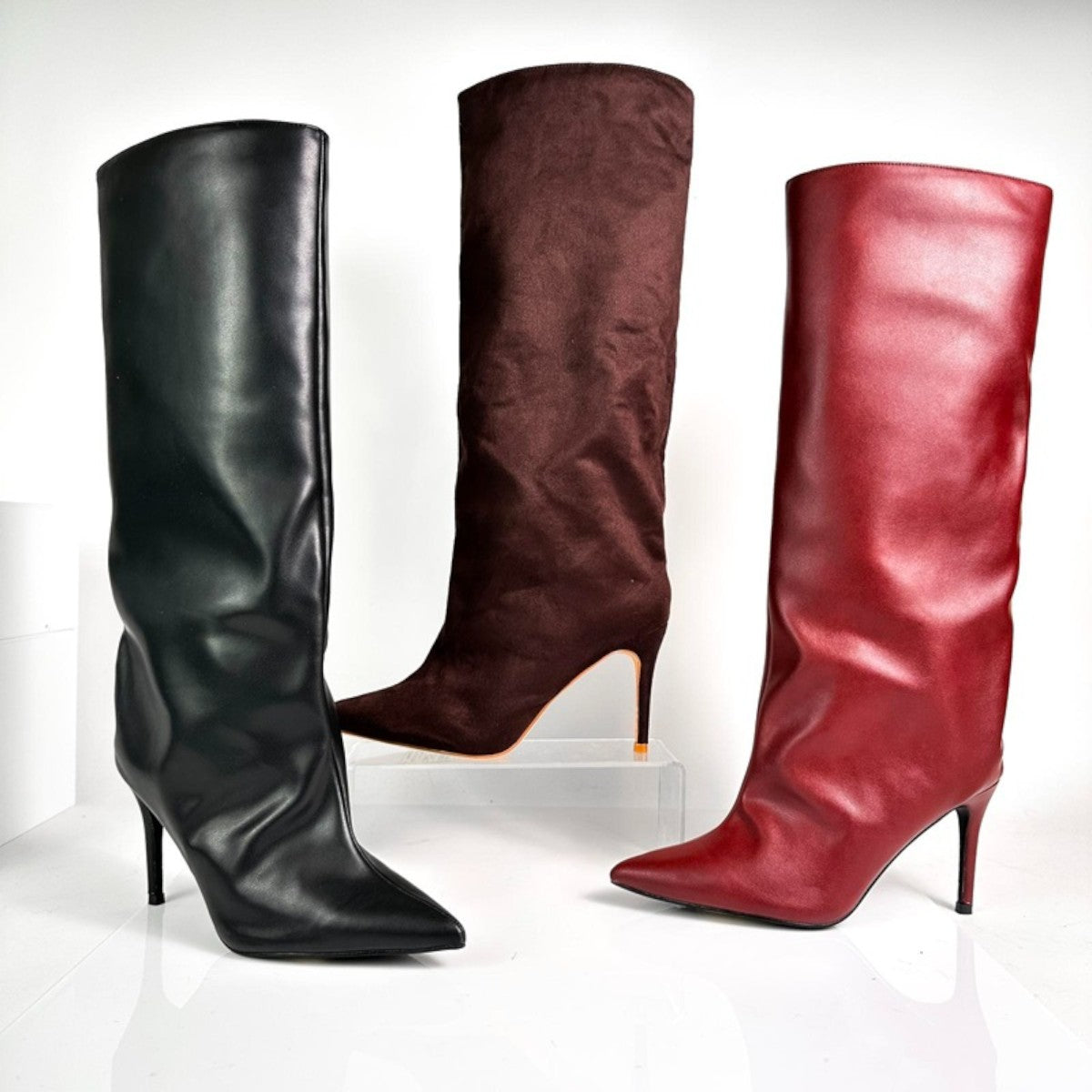 Step out in confidence with these pointed toe stiletto heel knee-high boots crafted to deliver both sophistication and modern edge. Featuring a sleek tall shaft and refined high heel, they create a flattering silhouette that pairs beautifully with casual or dressy outfits. Designed for versatility, these boots move seamlessly from daytime wear to evening style, making them a go-to choice for the fall and winter seasons. Perfect with dresses, skirts, or fitted jeans, they bring a polished finish to any look. Whether for everyday fashion or as a standout addition to your Halloween attire, these boots are an essential statement piece.