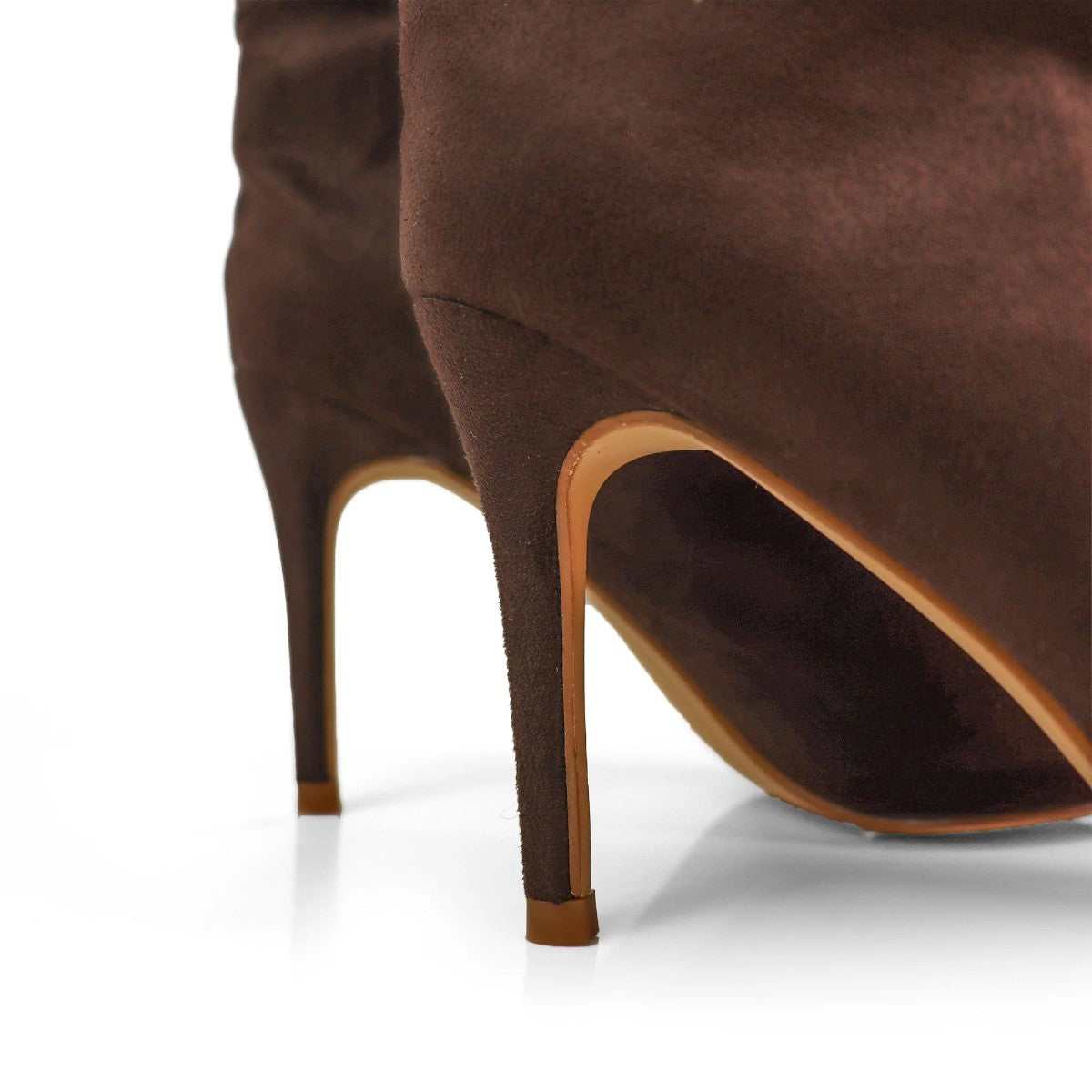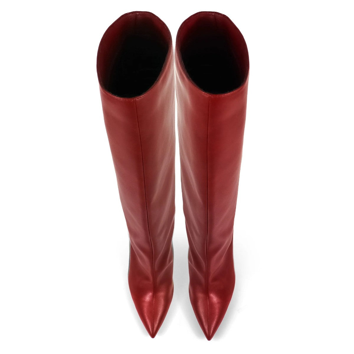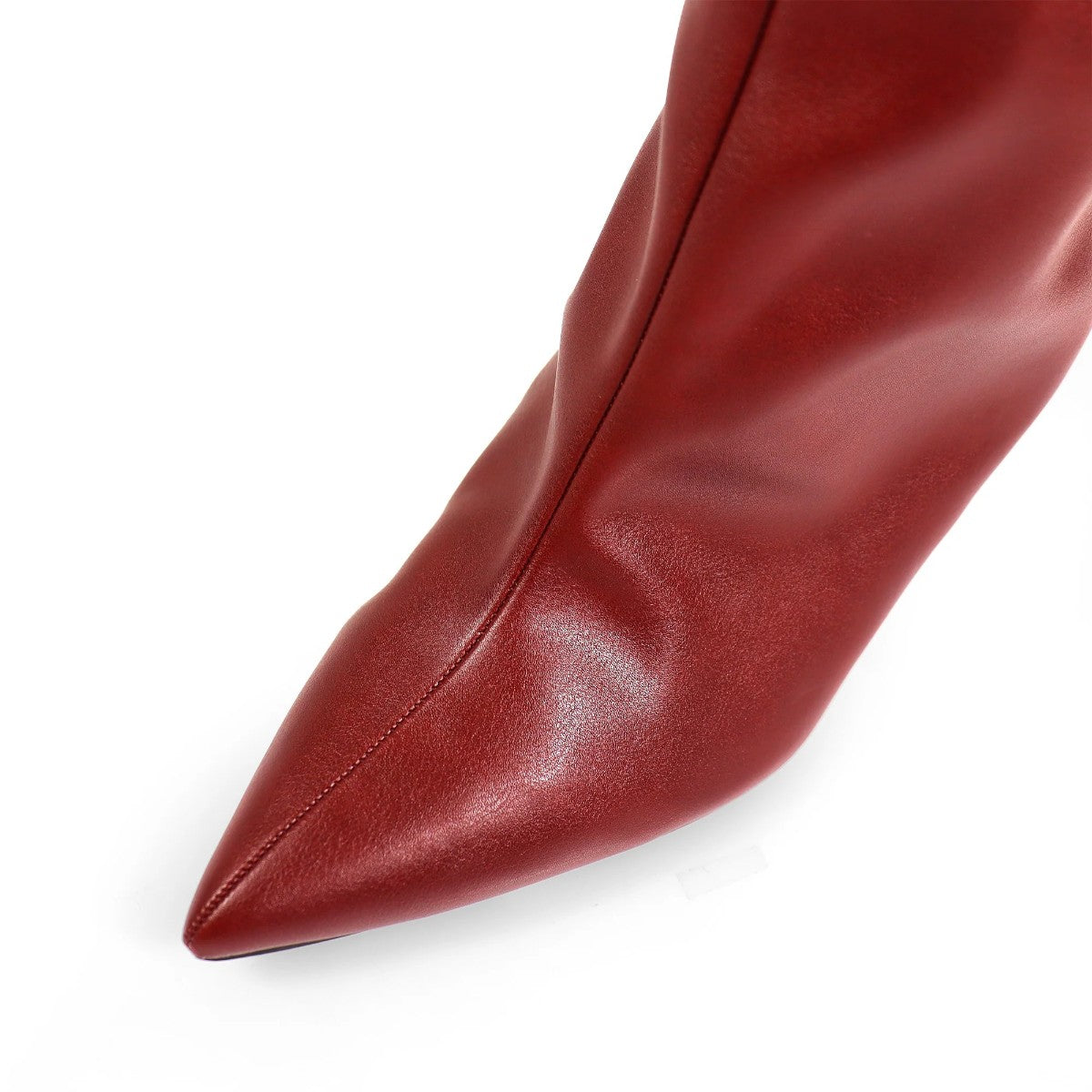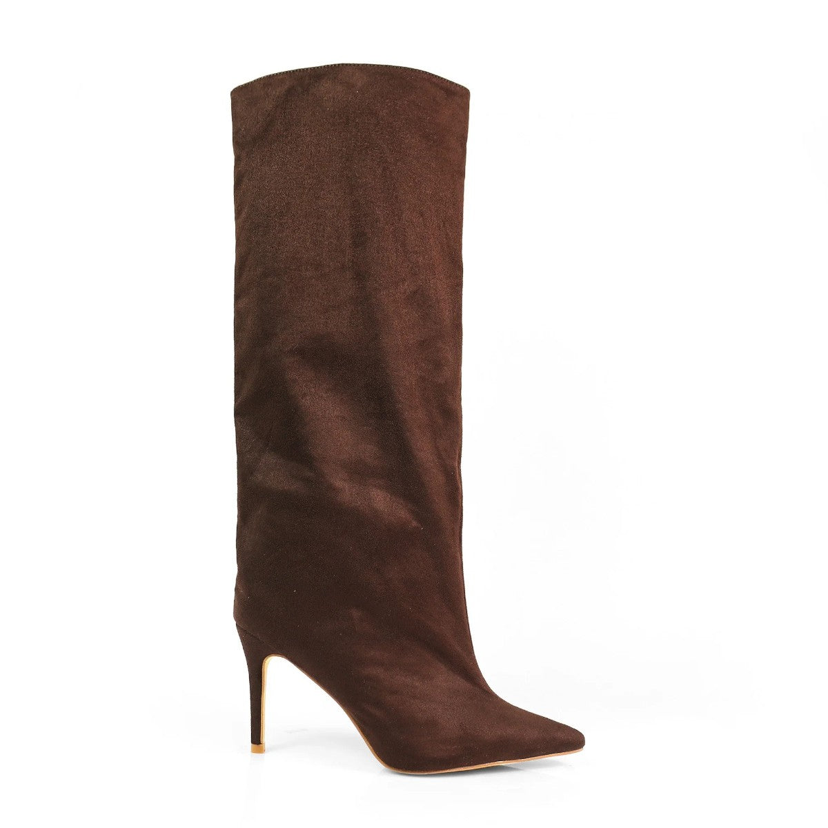 Step out in confidence with these pointed toe stiletto heel knee-high boots crafted to deliver both sophistication and modern edge. Featuring a sleek tall shaft and refined high heel, they create a flattering silhouette that pairs beautifully with casual or dressy outfits. Designed for versatility, these boots move seamlessly from daytime wear to evening style, making them a go-to choice for the fall and winter seasons. Perfect with dresses, skirts, or fitted jeans, they bring a polished finish to any look. Whether for everyday fashion or as a standout addition to your Halloween attire, these boots are an essential statement piece.