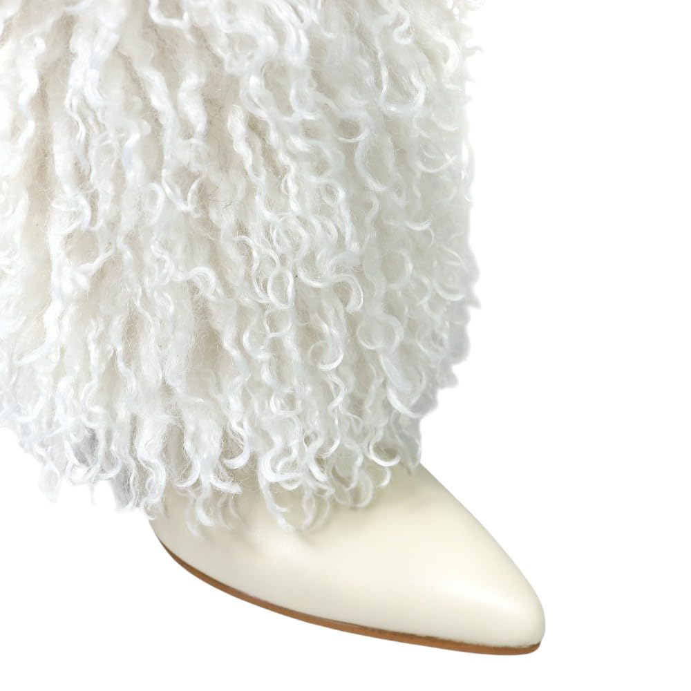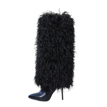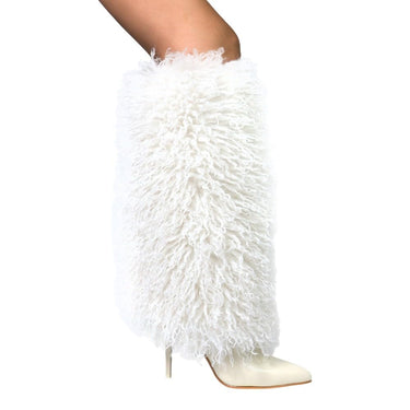 Step into bold, cold-weather glamour with these women’s faux fur knee-high stiletto boots, designed to make a statement at every event. Featuring a sleek pointed closed toe and a dramatic fold-over silhouette, these fashion boots combine plush faux fur detailing with a structured high-heel design for an elevated look.