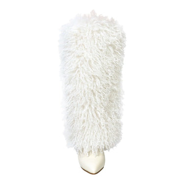 Women's Faux Fur Knee High Stilettos Heel Fashion Boots
