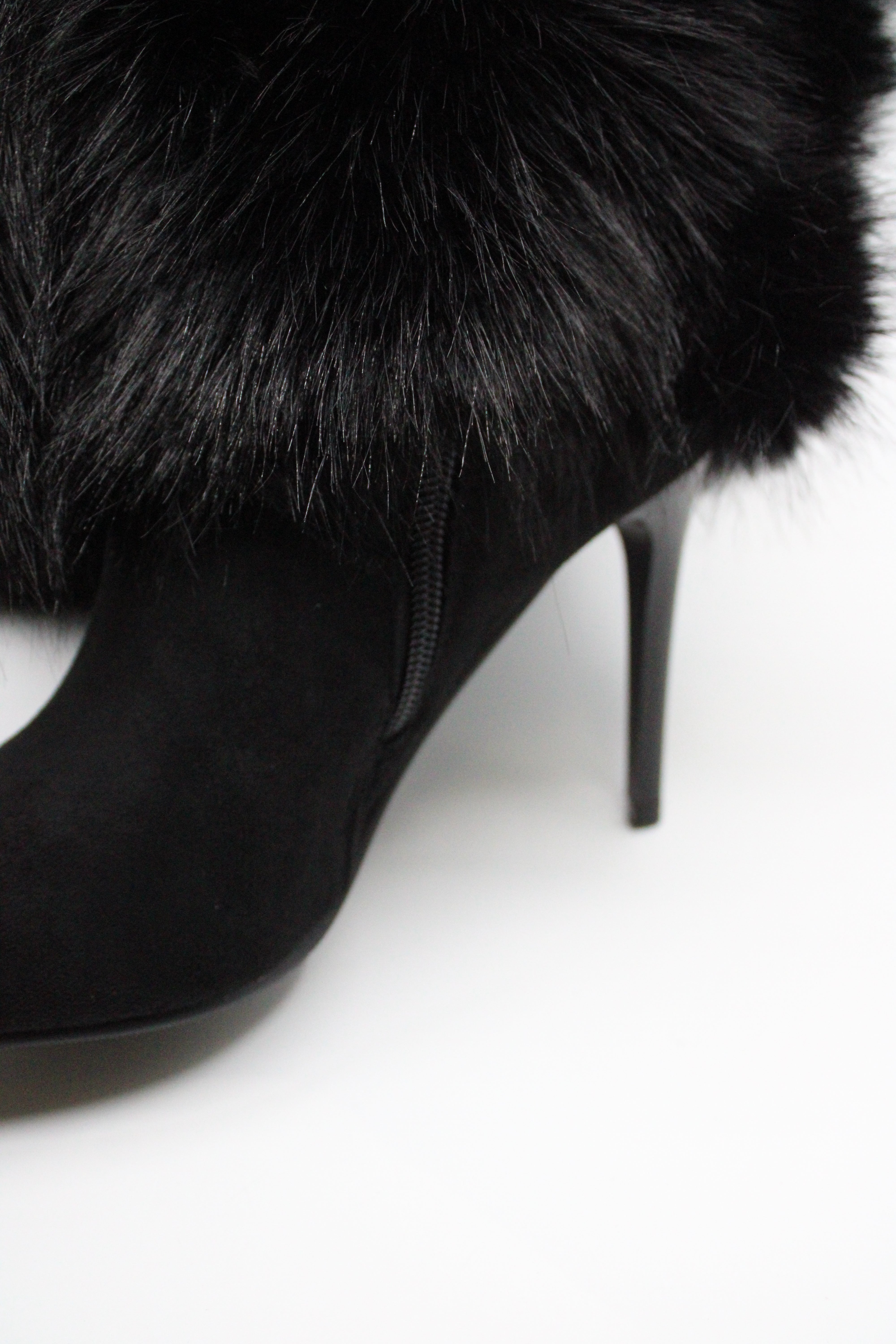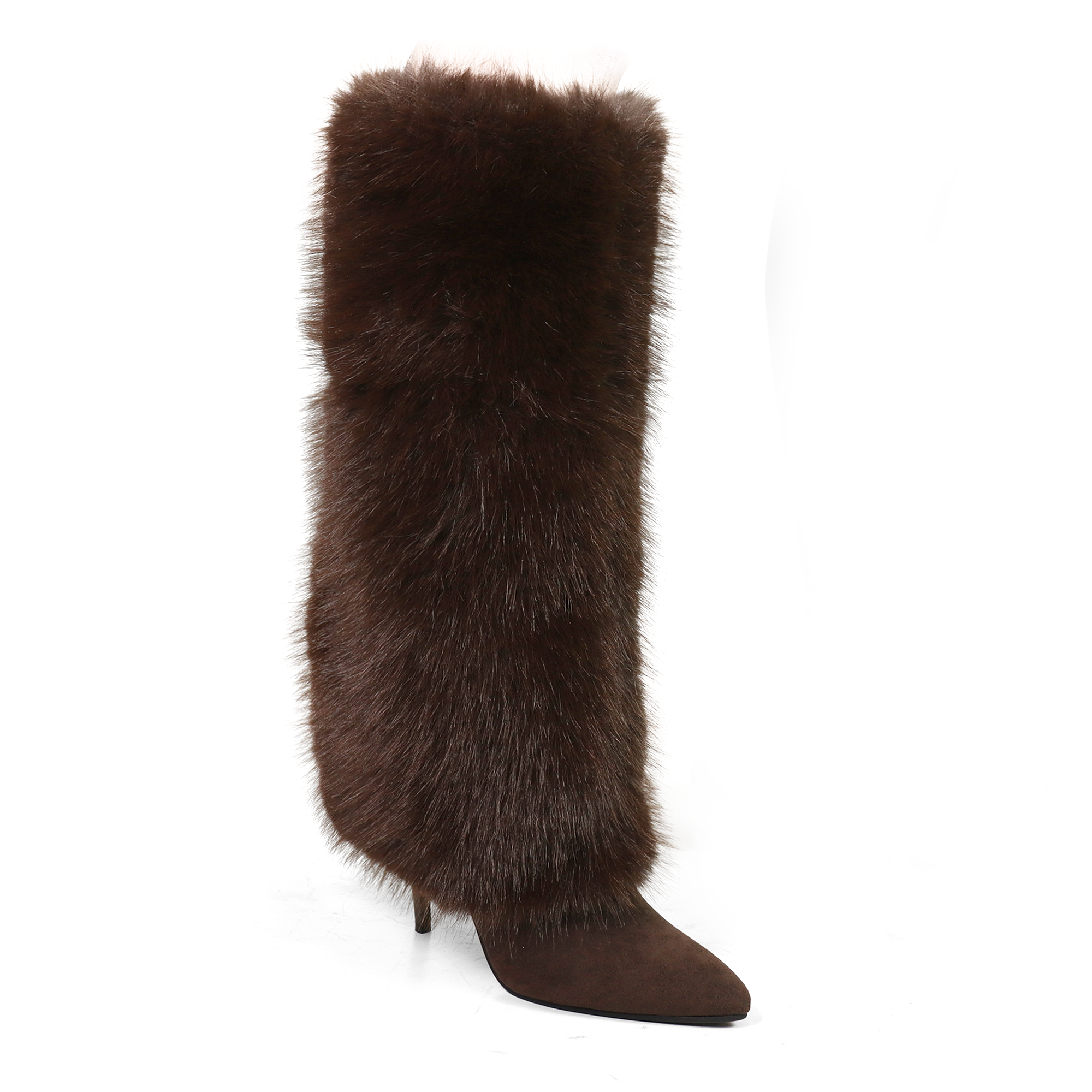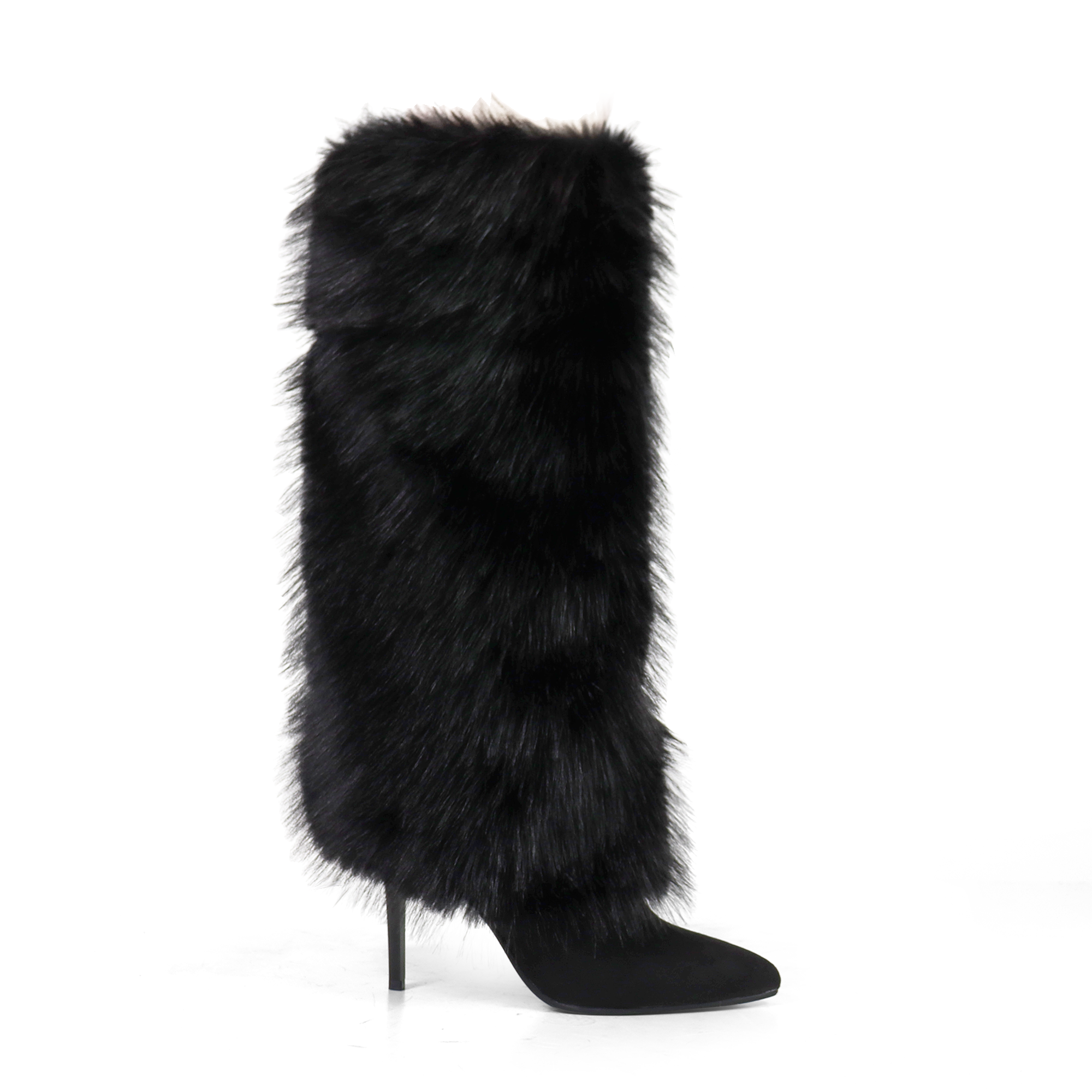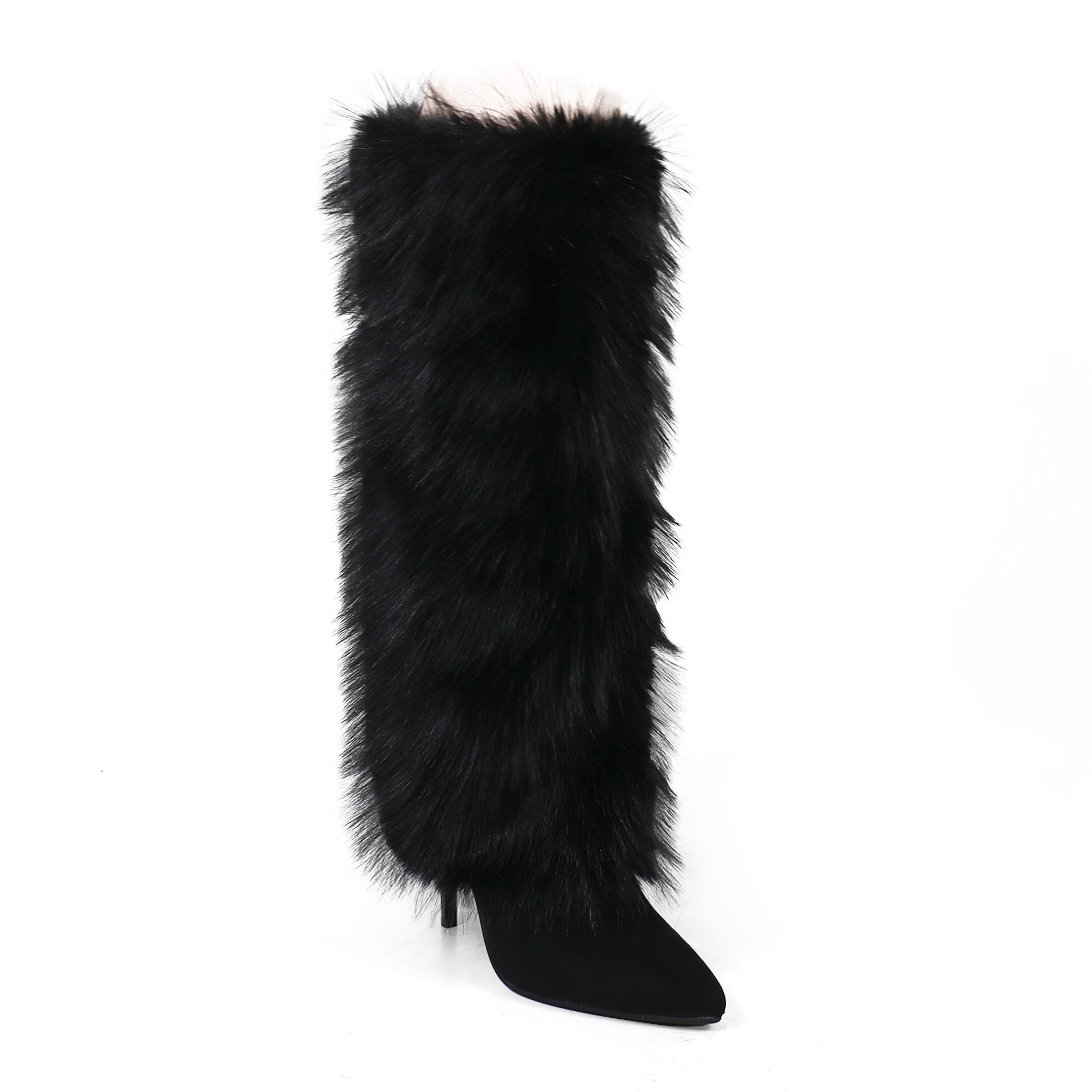 Women's Glamorous Faux Fur Knee-High Side Zipper Sexy Stiletto Heel Boots