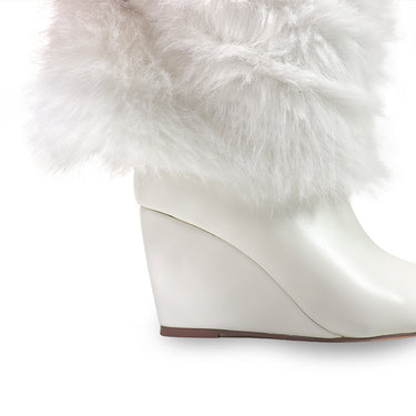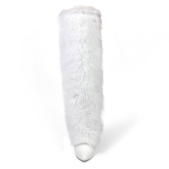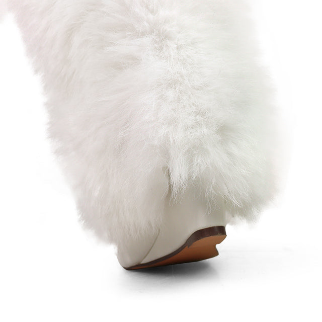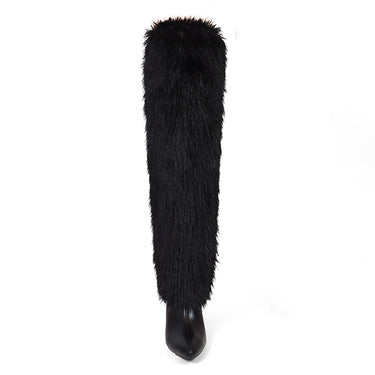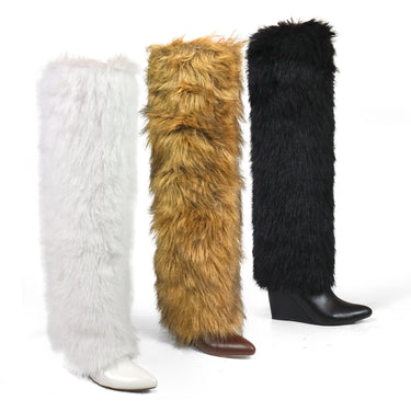 Turn heads this winter with these statement over-the-knee faux fur boots. Featuring a luxuriously soft, fluffy shaft and sleek closed-toe silhouette, they deliver cozy texture with undeniable style impact. The comfortable wedge heel provides subtle lift without sacrificing all-day wearability. Crafted from smooth PU material for a polished finish, these boots elevate mini skirts, sweater dresses, and skinny jeans effortlessly. Perfect for cold-weather styling, holiday celebrations, nights out, and bold streetwear moments.