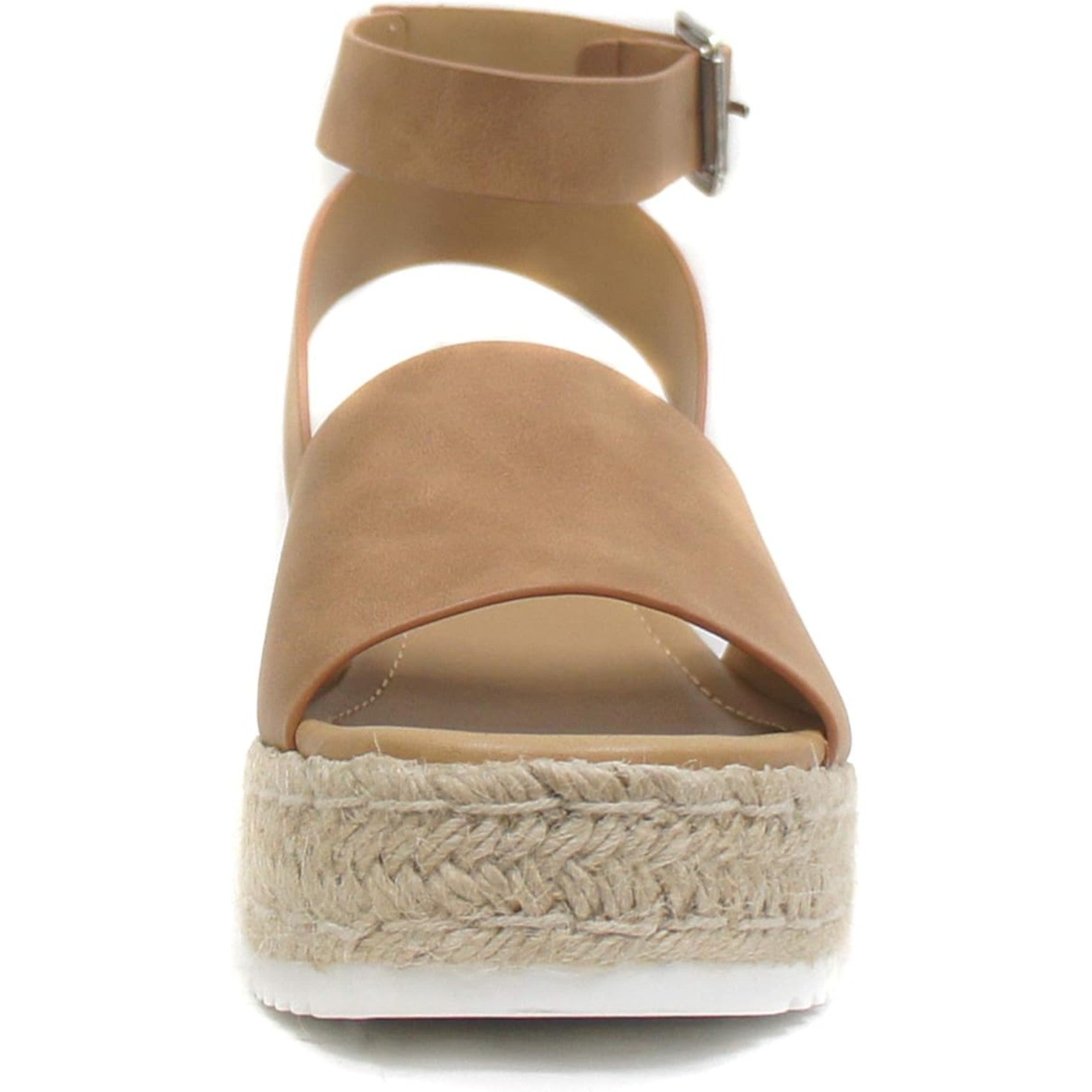 The Soda Topic Espadrille Platform Sandals are perfect for women who want to stay stylish while feeling comfortable. Featuring a smooth footbed, an adjustable buckle closure strap at the ankle, and a flat espadrille sole that adds a bit of lift, these sandals provide the perfect balance of practicality and fashion.