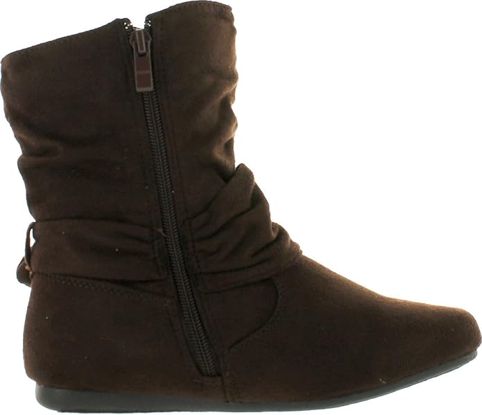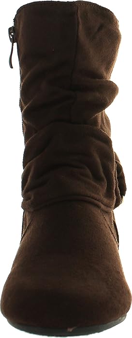 Women's Mid-Calf Slouch Boots offer comfort and style with their flat heel height of 0.25 inches. The suede material upper and rounded toe design add a touch of casual elegance. With the side zipper, these boots are easy to take on and off, keeping your feet comfortable all day long. True to size and imported.
