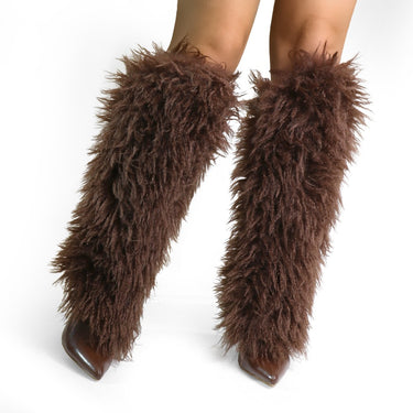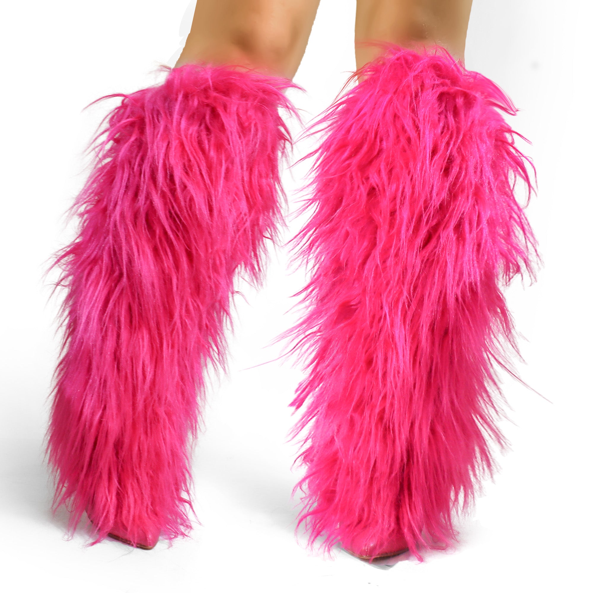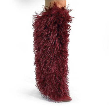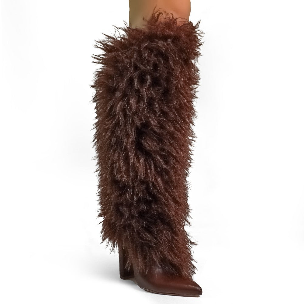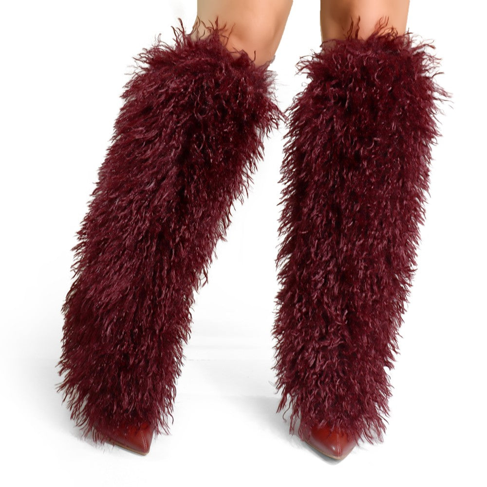 Women Winter Chunky Heel Boots, Furry Boots, Halloween Fashion Style Snow Boots