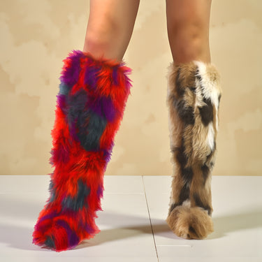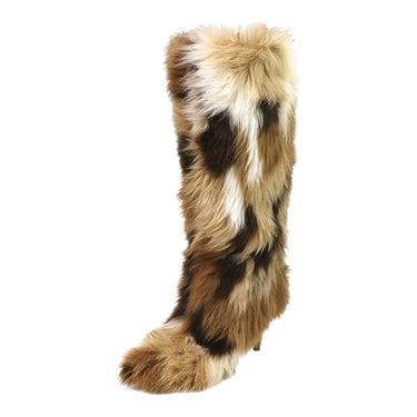 Make a statement with these Women's Knee High Pointed Toe Stiletto Heel Fluffy Fur Boots. Crafted with luxurious multi-tone faux fur and a sharp pointed toe, they deliver instant glamour and leg-lengthening elegance. The sleek stiletto heel and knee-high shaft create dramatic visual impact, while the cushioned insole and convenient side zipper ensure all-day comfort and easy on-off. Whether you're heading to a night out, festival, or photoshoot, these show-stopping boots pair effortlessly with dresses, skirts, or skinny jeans to transform any winter outfit into a fashion moment.