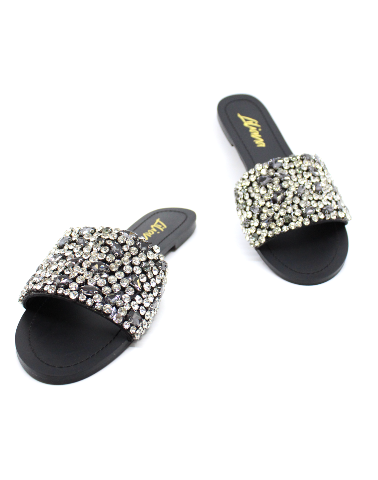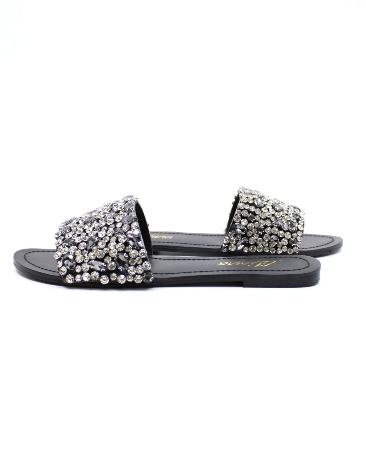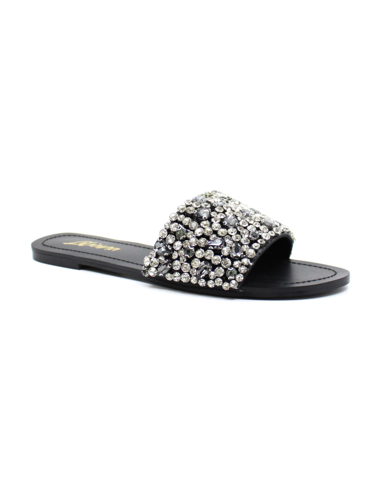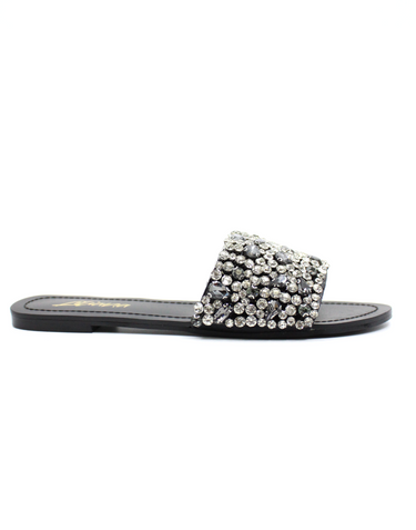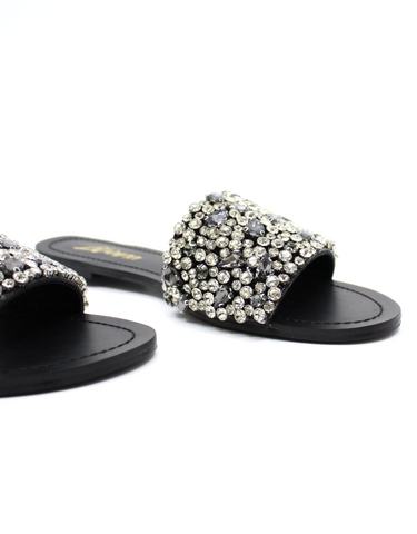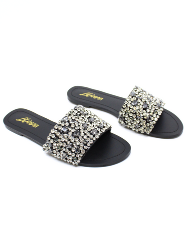 Liliana Women’s Rhinestone Slide Sandals – Crystal Embellished Flat Slip-On