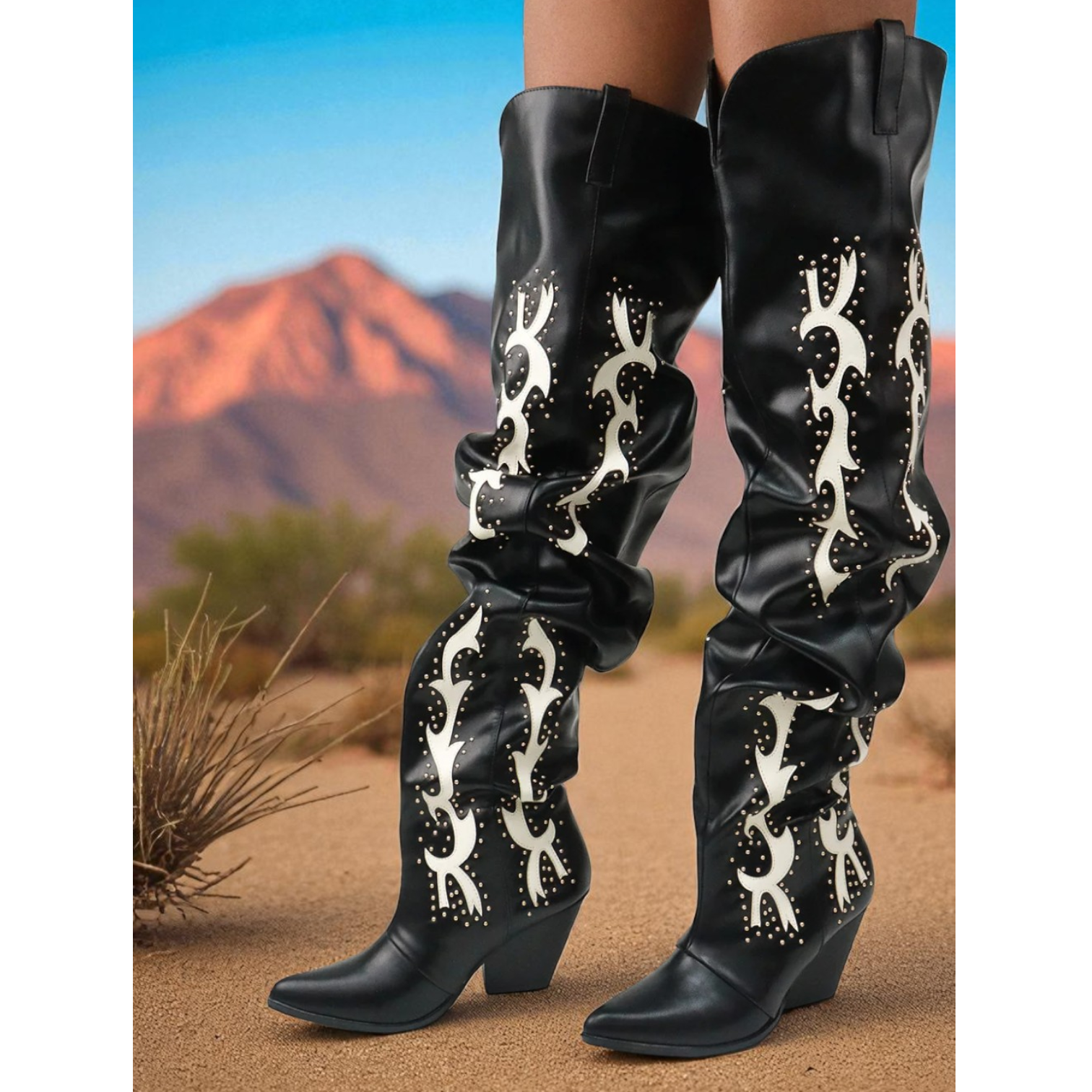 Over the Knee Thigh High Cowboy Boots for Women Studded Slouch Cowgirl Boot